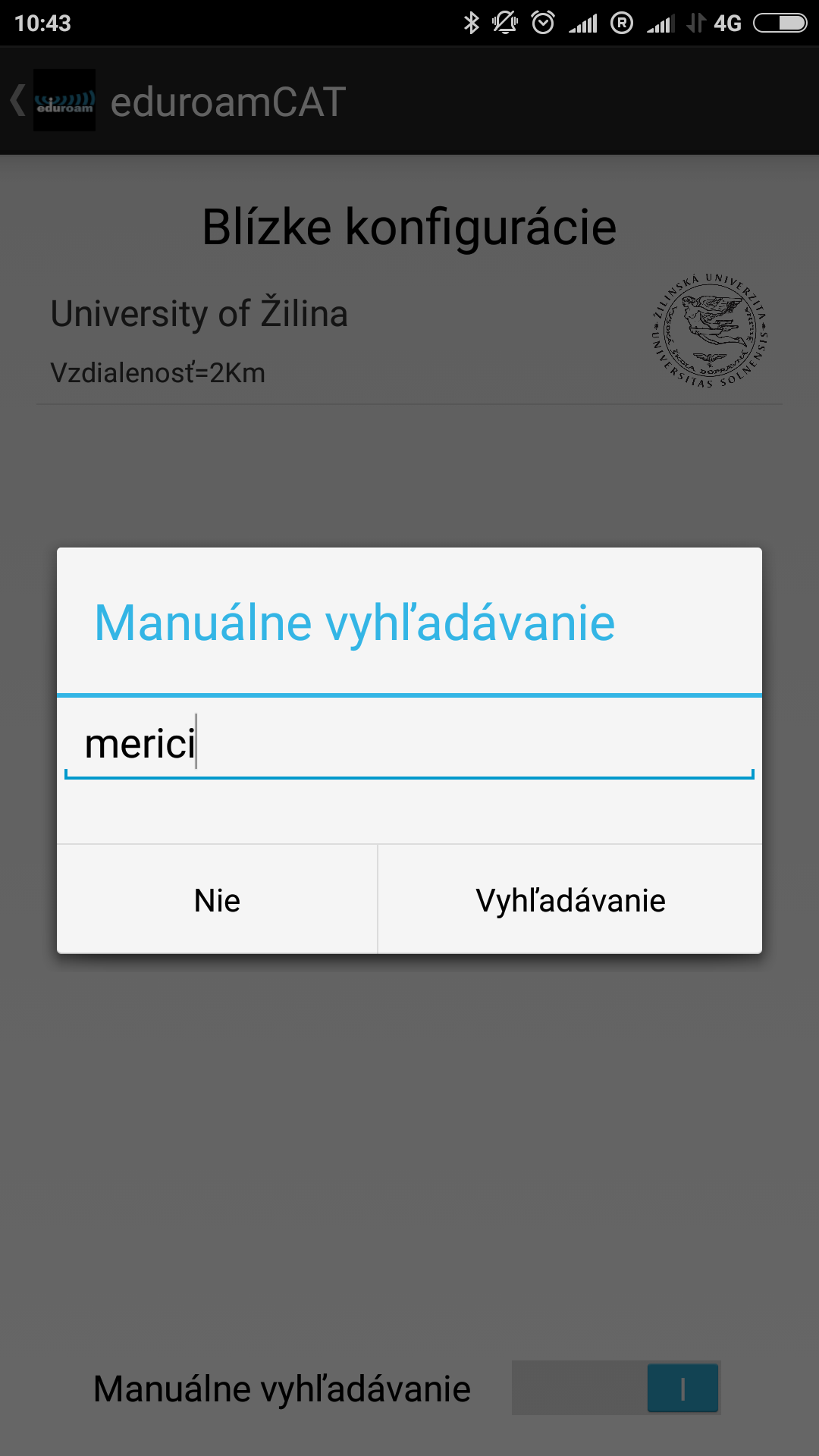 Ak sa názov našej skoly nezobrazí automaticky, kliknite na manuálne vyhľadávanie